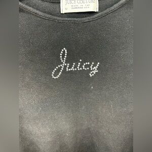 Brands- Juicy Couture Style- Short Sleeve T-Shirt Material- N/A- Feels like Cotton and Spandex Color- Black Condition- Good- Possible slight fading