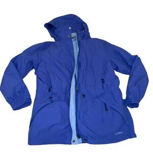 Women’s Vintage L.L. Bean Blue Hooded Rain Jacket with Fleece Lining Size Large