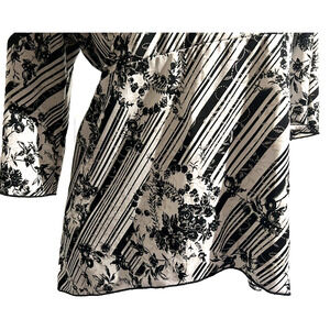 The Vintage La Khaki Black/White Floral Cross Stretch Top is in Excellent Condition.