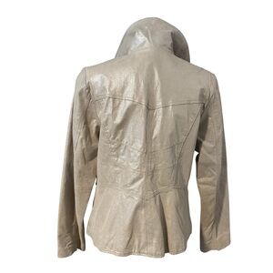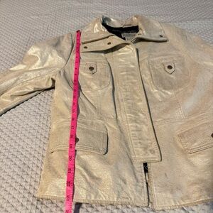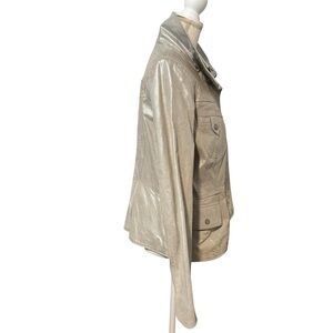 Elevate your style with this chic metallic leather jacket. Perfect for any occasion, its sleek design adds a touch of elegance to your wardrobe.
