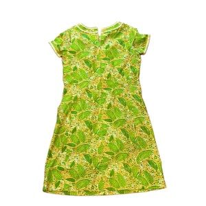 Womens Vintage Lilly Pulitzer Shift Dress with Tropical Print and Front Pockets