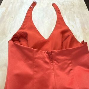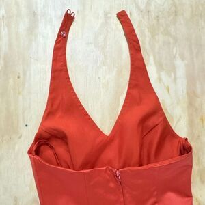 Women's Vintage Long Formal Dress Orange Size 2 Halter Neck Sleeveless Beaded