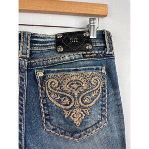 Women’s Vintage Miss Me Size 31 Low-Rise Distressed Jeans with Bedazzled Back Po