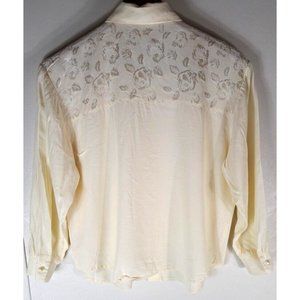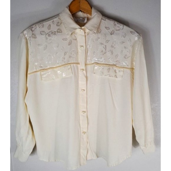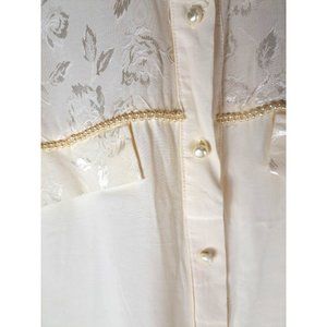 Women's Vintage Ninon De Lenclos Western Top Faux Pearls Rose Demask Ivory 80s L