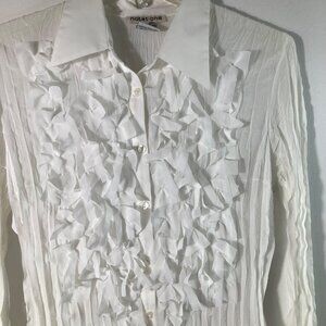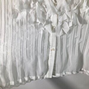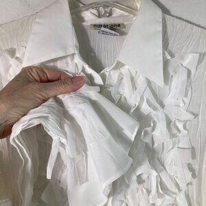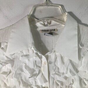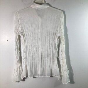 Womens Vintage Notations Crinkle Bow Bead Button Shirt Bell Sleeve M White