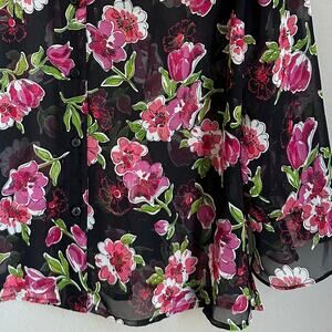 Women's Vintage Notations Sheer Floral Top 90s Button Up Whimsy Size Large