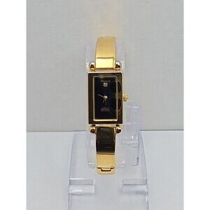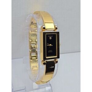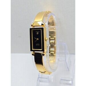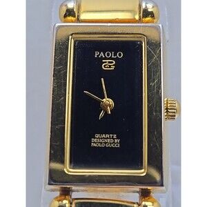 Womens Vintage Paolo Gucci Tank Watch Black Dial Gold Tone Bangle New Battery