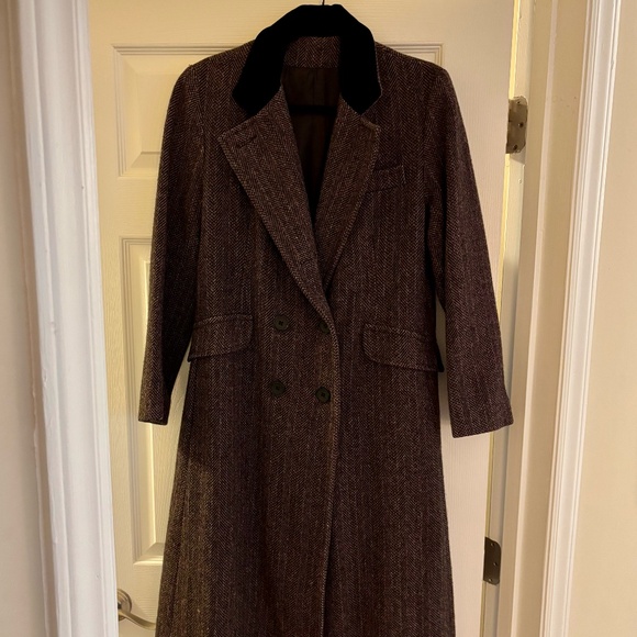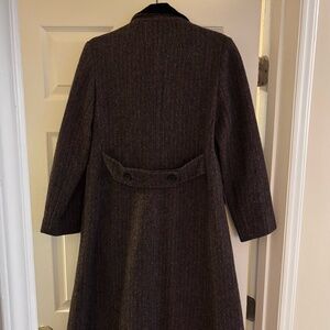 Women's Vintage Projections Wool Tweed Long Coat Jacket Burgundy Black