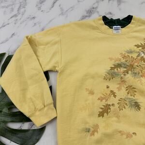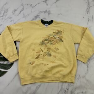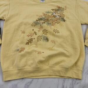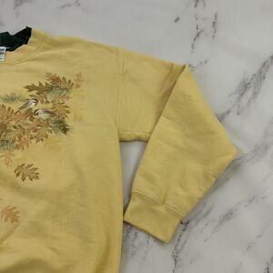 Womens Vintage Pullover Sweatshirt Size M Yellow Green Birds Fall Leaves Grandma