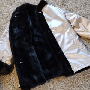 Women's Vintage Reversible Dark Brown and Taupe Faux Fur Coat with Pockets