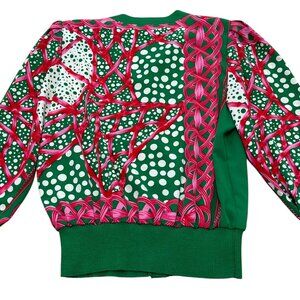 Women’s Vintage Robert Janan 2 piece outfit green/pink l/s silk skirt pleated elastics waist 1990s jacket chest 20 sleeve 25 length 24 inches skirt waist 28 length 28 inches made in the USA