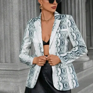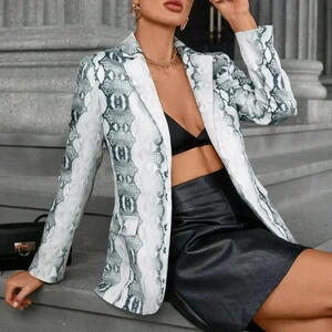 Women's Vintage Snake Pattern Print Long Sleeve Blazer Jacket