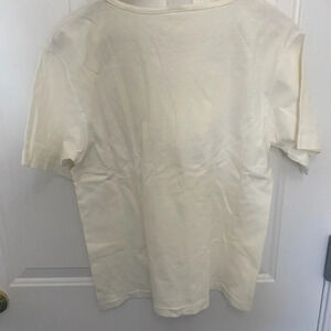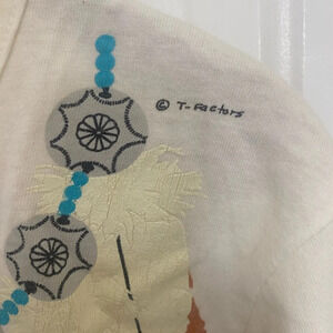 Such a fun T Factor White Tshirt featuring elegant feathers. The round neckline and short sleeves provide a comfortable fit for regular size type. This basic T-shirt is perfect for any occasion and can be paired with jeans or shorts. The white color adds a touch of sophistication and the T Factor brand ensures quality. Casual, one size t-shirt in good condition.