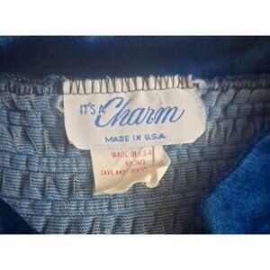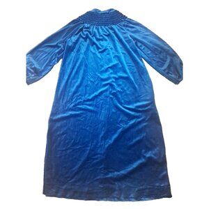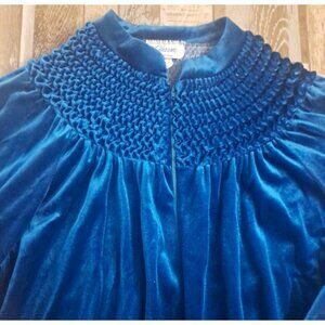 Womens Vintage Velour Robe Housecoat Blue Ultra Soft 3/4 Zip Pocket USA Made S