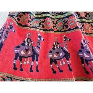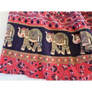 Womens Vintage Wrap Around Maxi Skirt Made in India Red Elephant Print One Size