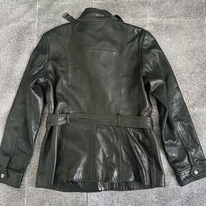Womens Vintage Y2K Guess Soft Black Leather Belted Zip Up Motorcycle Jacket Sz L
