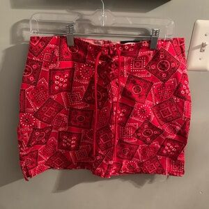 Elevate your casual wardrobe with this vibrant red bandana print skorts. Perfect for a stylish day out, combining comfort and fashion effortlessly. Size L
