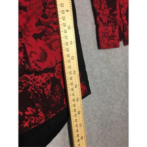 Womens Vintage Button Up Size Large Black Red Floral Mixed Pattern Large Pockets