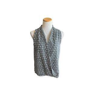 Womens Violet & Claire Faux Wrap Drape Sleeveless Diamond Print Top - Sz M