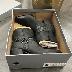 Classic distressed leather meets a modern square toe on this must-have bootie with an interior zipper and easy block heel-height.