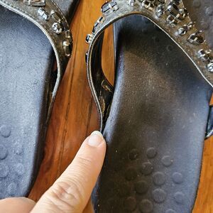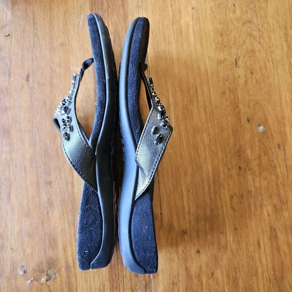 Women's Vionic Pearl Black Jeweled Rhinestone Flip Flop Thong Sandals Sz 7