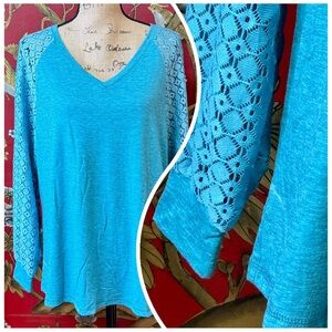 1️⃣ Women’s V-neck Lace Dressy Top Blouse | Size: XL | Color: Bluegreen | Condition: Excellent Preowned (never worn) | Material: 82% Polyester 12% Rayon & 6% Spandex | Measurements: See Photo | Weight: 0:6.8 lb:oz. | #M2
