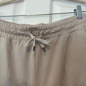 Women's Vuori Halo Essential Widely - Short in Ecru Heather size medium. Great condition only worn a few times. Very comfortable, color neutral goes with everthing. Elastic waistband, mid-rise, slash pockets, length = 29.5