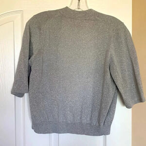 Womens WHITE + WARREN metallic silver buttonless half sleeve cotton poly cardigan in excellent condition size small. Perfect over gowns and dresses for evening wear or dress down too. Has a little area on back neck that needs a tiny easy repair. Will always be useful.