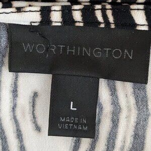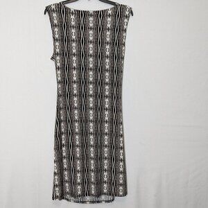Women's WORTHINGTON Black/Tan Print Faux Wrap Sleeveless Sheath Dress; Size L