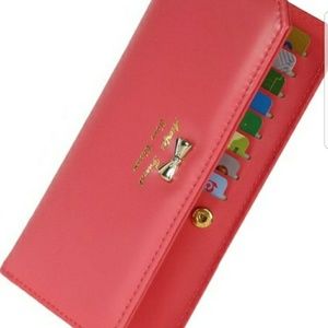 Material: PU leather Weight: 80g, Size: 18x9x1.5cm/7.1x3.5x0.6inch Style: Casual Closure Type: Hasp This item is made of PU leather. It is also fashionable, strong, and durable. Designed with bowknot decoration, ideal wallet for fashionable ladies. You can simply hold it in your hand or put it in your bag. Ideal for putting ID card, money, coin, passport, photos, IC card and VIP card etc. Package include: One women wallet. Colors: 3 Light Pink, 3 Black, 3 Watermelon Red, and 3 Rose Red.