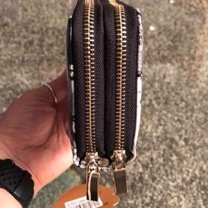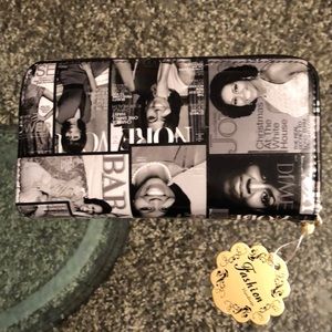 Ladies wallet featuring Michelle Obama. Large wallet with double zipper and attachable wristlet. Made if a durable vinyl.