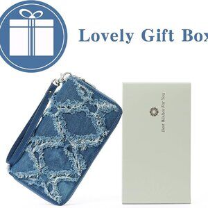 About this item Wristlet Women's Wallet--Also a ladies clutch purse with detachable wrist strap, safe and portable, easy to take cards, cash and other things Retro Denim Wristlet Wallet--The rag
