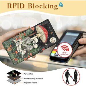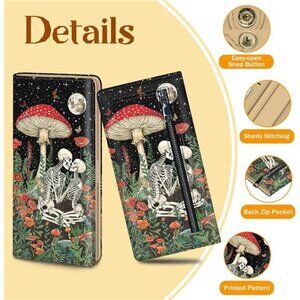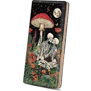 🧿Novelty Design: If you’re tired of heavy, monotonous wallets, this women wallet is an excellent choice for you. The ultra slim wallet for women features a funny gothic design: under the quiet moonlight, mushrooms, skeleton lovers and flowers intertwined into a picture. It not only adds color to your daily life but also provides ample storage space and organization for everyday essentials