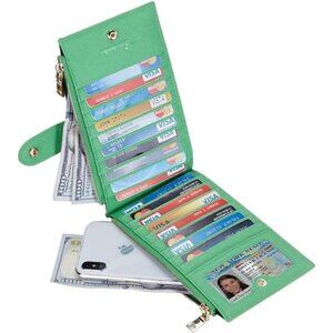 Women's Wallet RFID Blocking Bifold Multi Card Wallet Zipper Pocket Bright Green