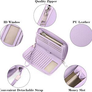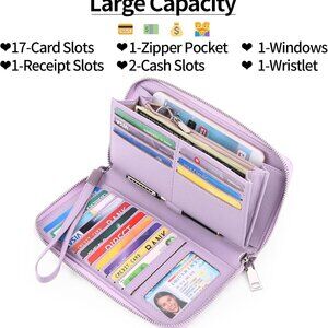 Single Zipper Wallet: This wristlet women's wallet is your complete daily organizer. It features 17 card slots(includes a clear ID window), 2 bill compartments, a zippered change pocket
