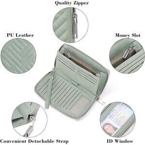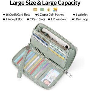 Womens Wallet Vegan Leather Large Capacity Green