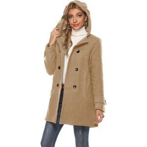 Women's Warm Double Breasted Wool Trench Coat Khaki