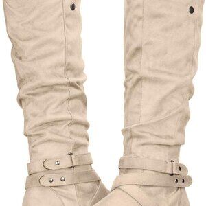 Women's Warm Fall Knee High Boots in Beige, Size 6