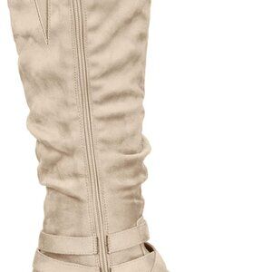 Features: These knee-high boots feature a trendy round-toe silhouette with an option for foldable or smooth shaft styles. The warm suede upper looks beautiful and feels soft. Full-length zipper closure with buckle details allows for a flexible calf fit. The 14.56-inch shaft is perfect for a snug but comfortable fit.