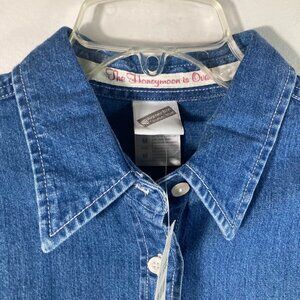 Womens Warner Brothers TAZ Denim Shirt M The Honeymoon Is Over NWT