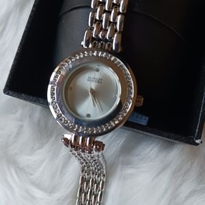 Introducing the exquisite silver watch by Badgley Mischka, a true embodiment of elegance and sophistication.