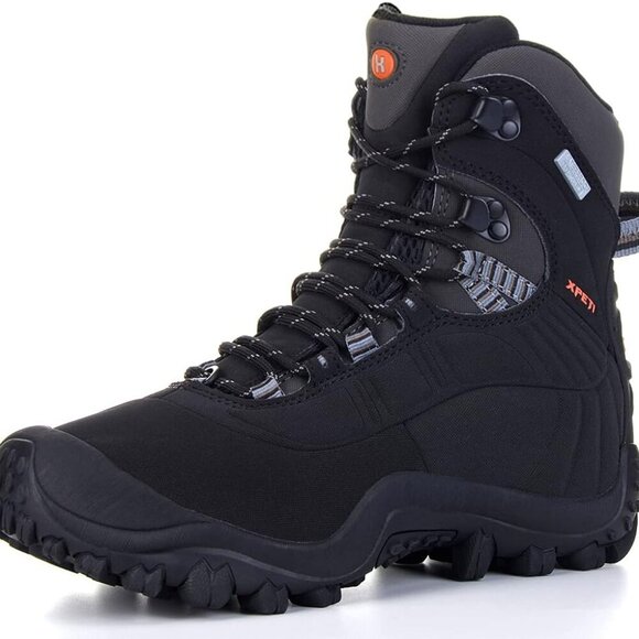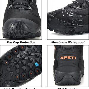 Features: Ankle-high waterproof hiking boots with a sleek, supportive silhouette designed for outdoor enthusiasts. Lightweight yet built for durability, they feature DRY Membrane waterproof tech, moisture-wicking lining, and padded ankle support for all-day comfort. The waterproof mesh upper keeps your feet dry, while the aggressive rubber outsole with 7mm multi-directional lugs offers excellent traction on rugged terrains. Insulated for warmth down to -13 F, with a shock-absorbing EVA midsole for reduced fatigue. Tough rubber toe cap and molded TPU ankle support protect during tough hikes.