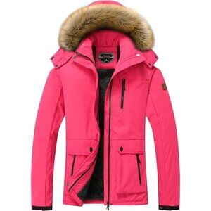 Women's Waterproof Ski Snow Jacket Silver Red