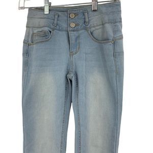 Womens Wax Jeans Size 1 Jr Crop Skinny Light Wash Butt I Love You Wide Belt 0561