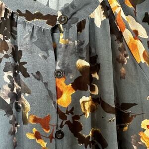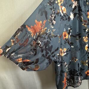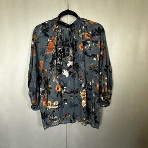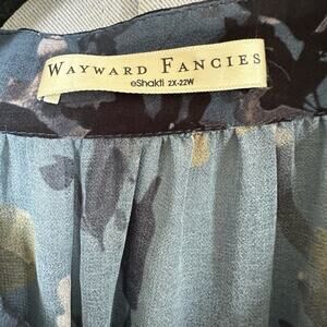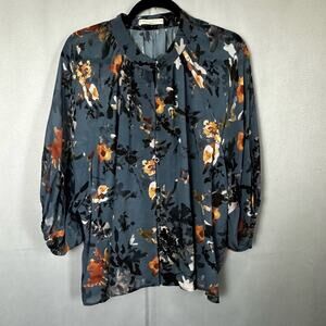 Women's Wayward Fancies Eshakti Blue Floral Sheer Button Up Blouse Career- 2X