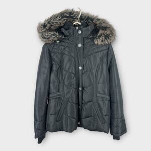 Women's Weather Tamer Medium Black Faux Detachable Fur Hood Puffer Jacker