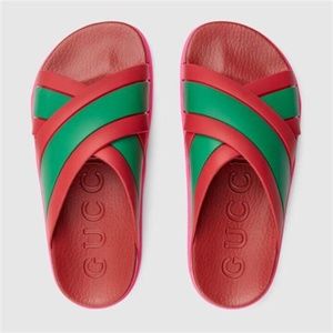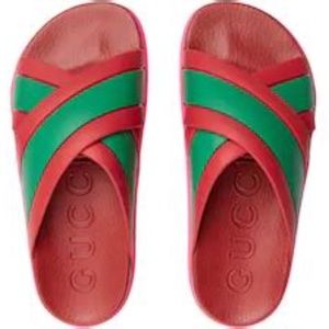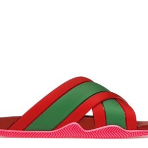 Women's Web slide sandal in green and red rubber new in box dust bags size 37