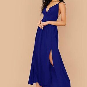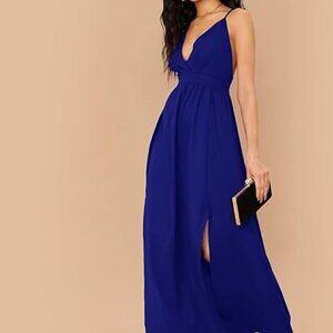 Women's Wedding Guest V Neck Spaghetti Strap Cocktail Party Maxi Dress