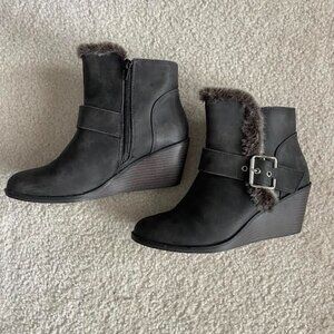 Women's Wedge Boots by Rampage 6.5 trimmed in faux fur with side buckle