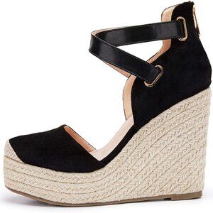 Women's Wedge Espadrille Sandals Suede Platform Ankle Strap 6.5